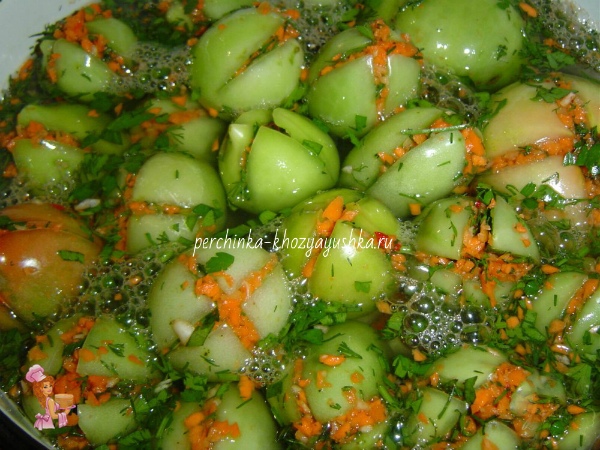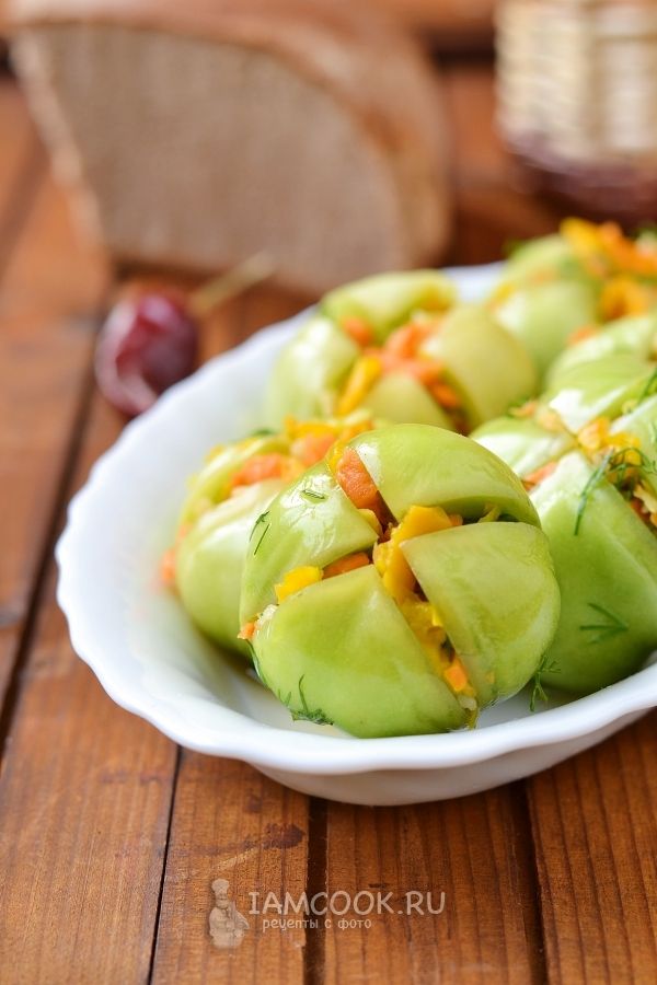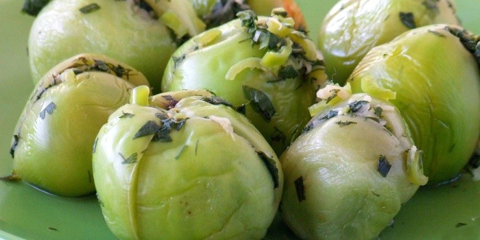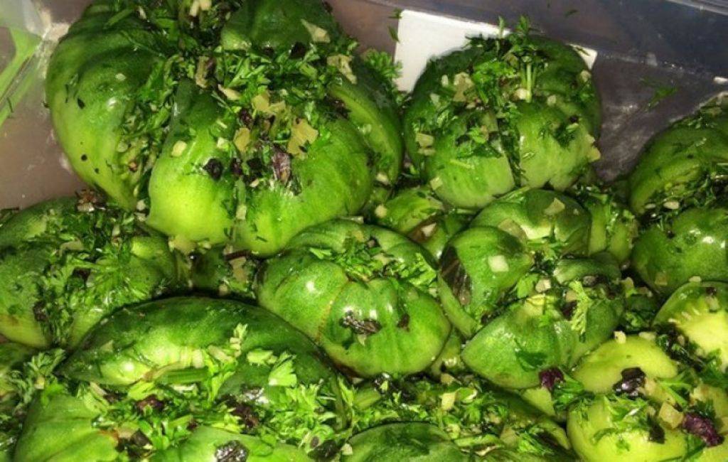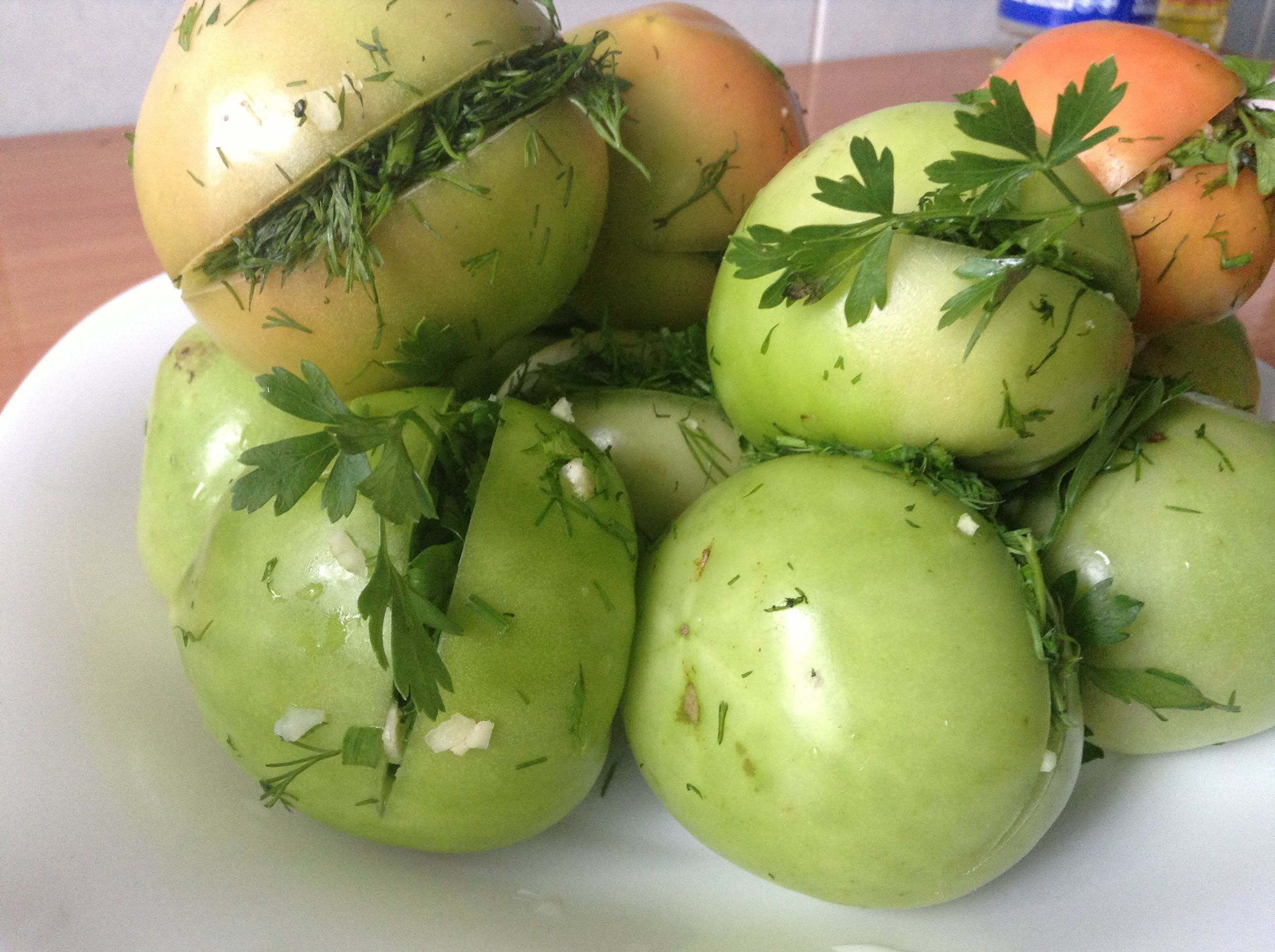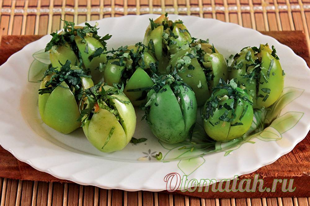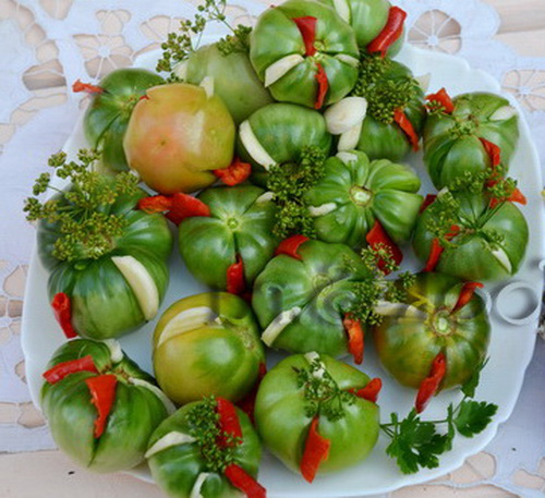 Зеленые помидоры, фаршированные чесноком