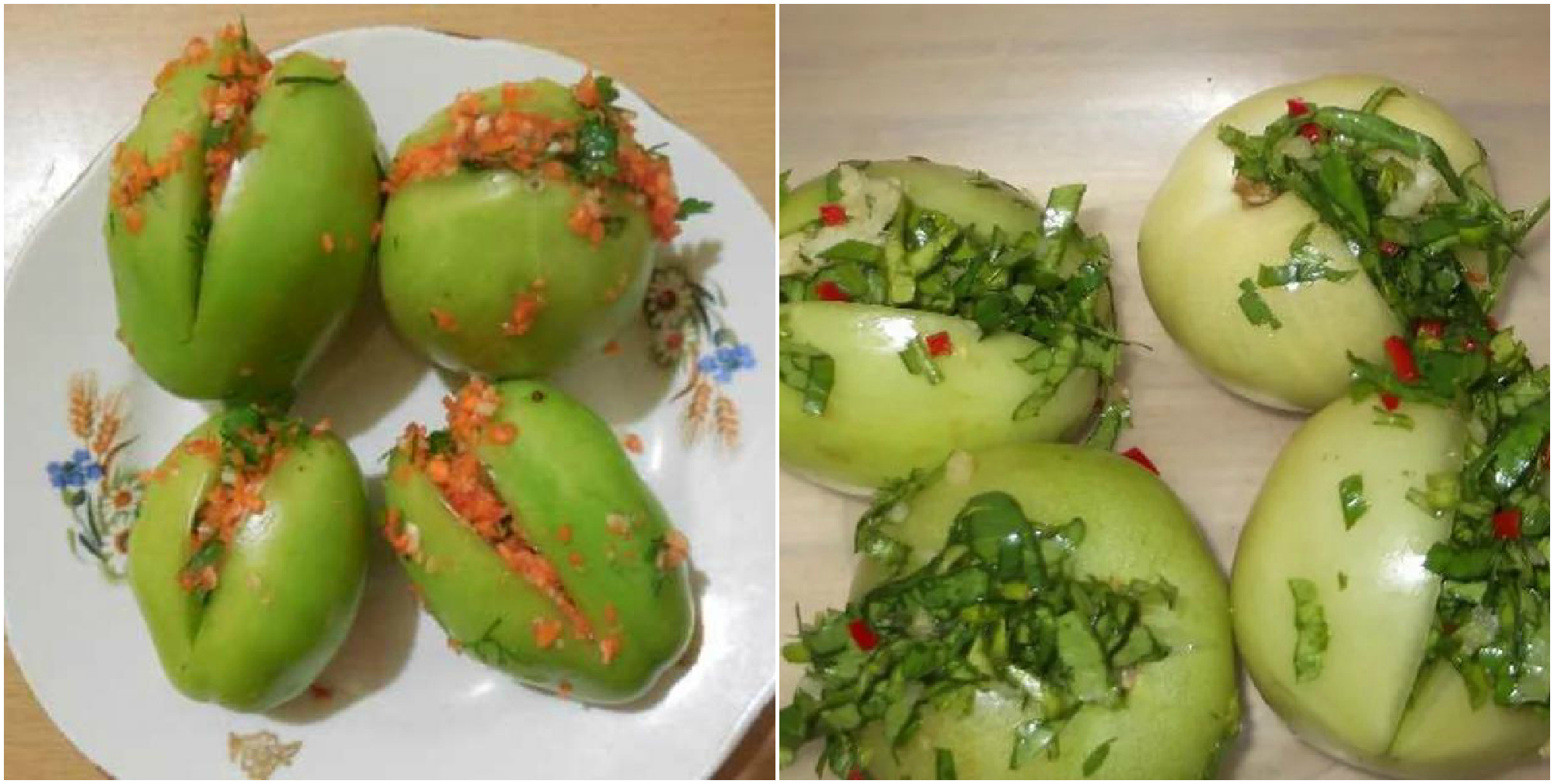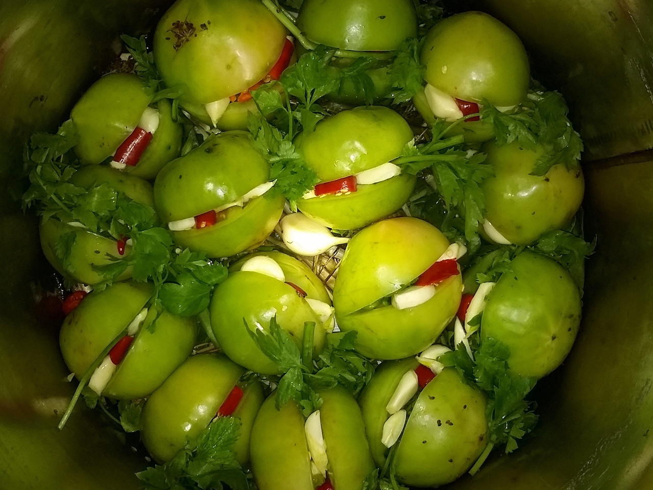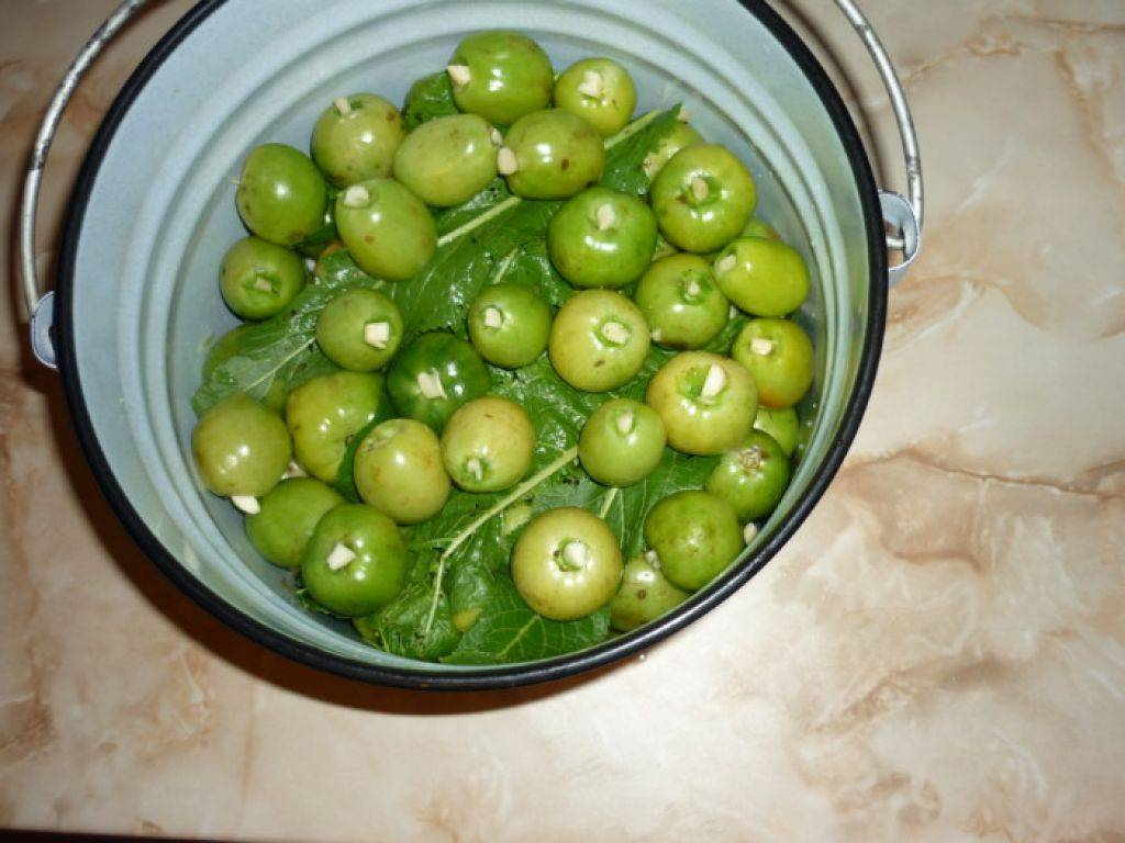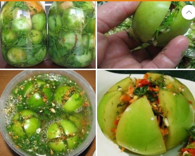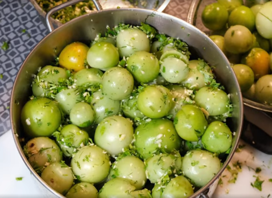 Зеленые помидоры, фаршированные чесноком