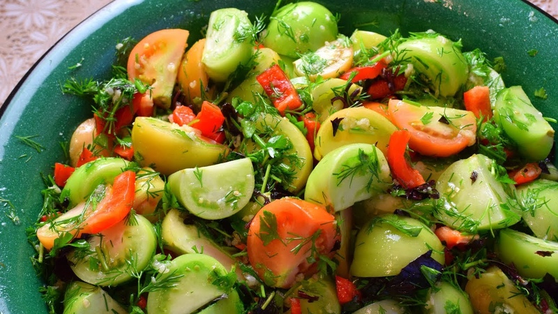 Рецепт салата из зеленых помидоров «Акварель»