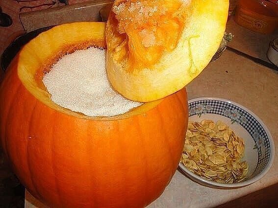 Я лучше вырежу тыквенные кишки вначале, чем выловлю их из тушеной тыквы в конце выпечки, но каждому свое.
