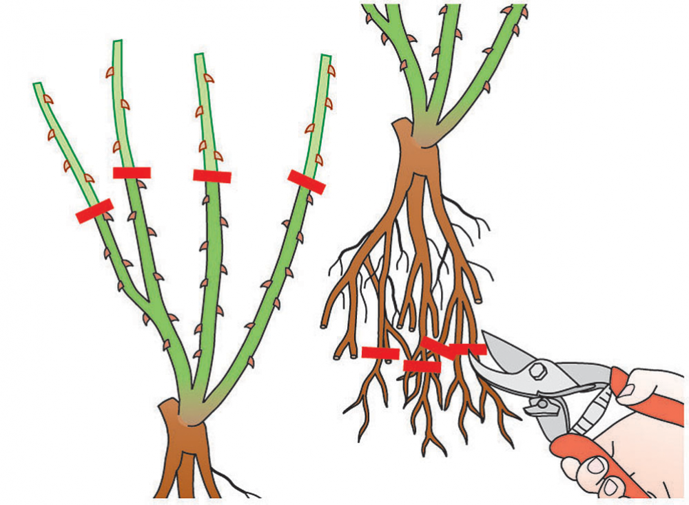 Через 15–20 минут достаньте цветок, подрежьте корешки на 1 см, удалите засохшие. Лучше отрезать и лишние побеги, чтобы добавить розе сил на восстановление.