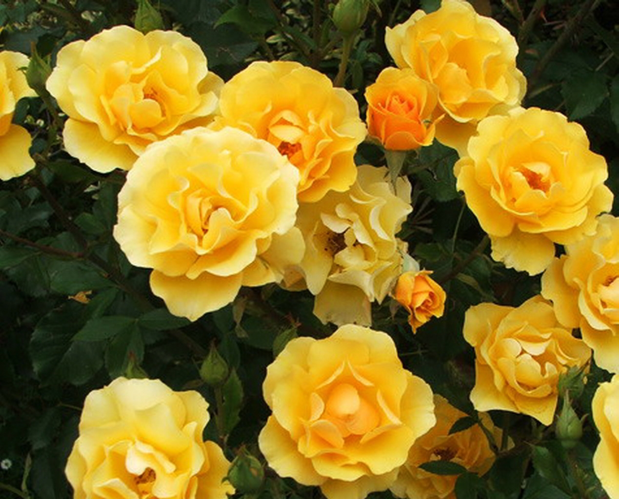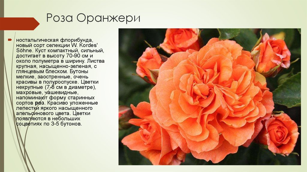 Флорибунда с оранжевыми цветками