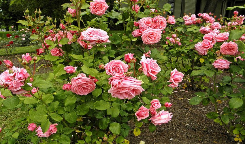 Флорибунда с розовыми цветками