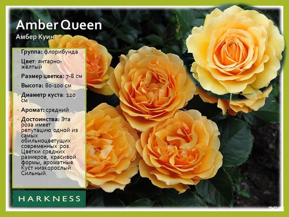 Амбер Куин – непрерывно цветущий куст высотой до 1 м с блестящими крупными листьями и янтарными цветками. Сорт устойчив к основным болезням роз.