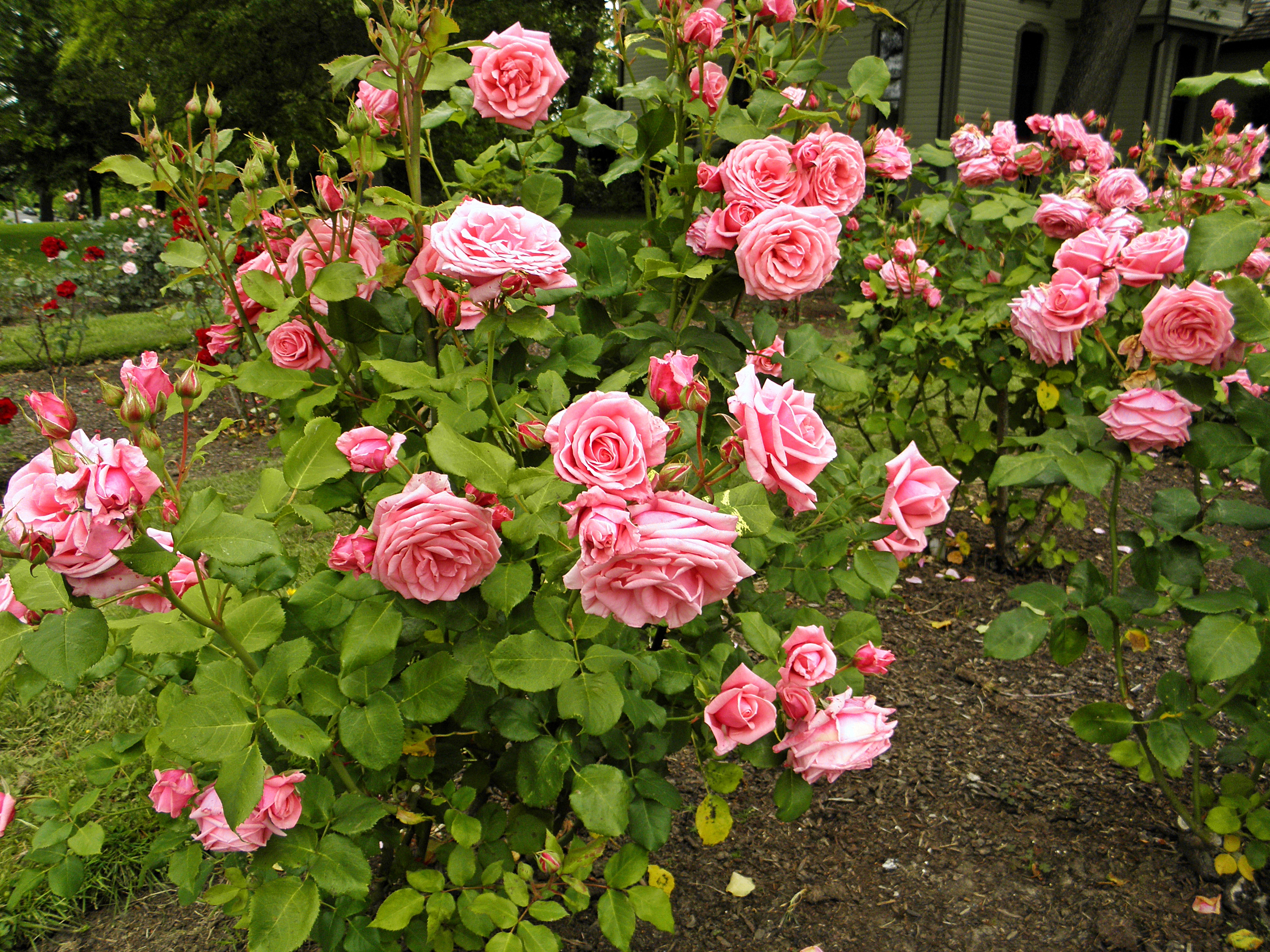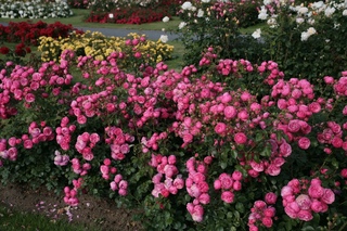 Сити оф Лондон – этот сорт подходит для живой изгороди: в высоту он может вырасти до 2 м, а в ширину – до 1,7 м. Средней махровости цветки диаметром до 8 см окрашены в нежный перламутрово-розовый цвет.