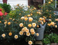 Показано: С контейнерами и подходящими сортами, такими как показанный здесь Apricot Drift, вы можете получить красивые, здоровые розы практически везде, где есть солнце и поблизости есть шланг.