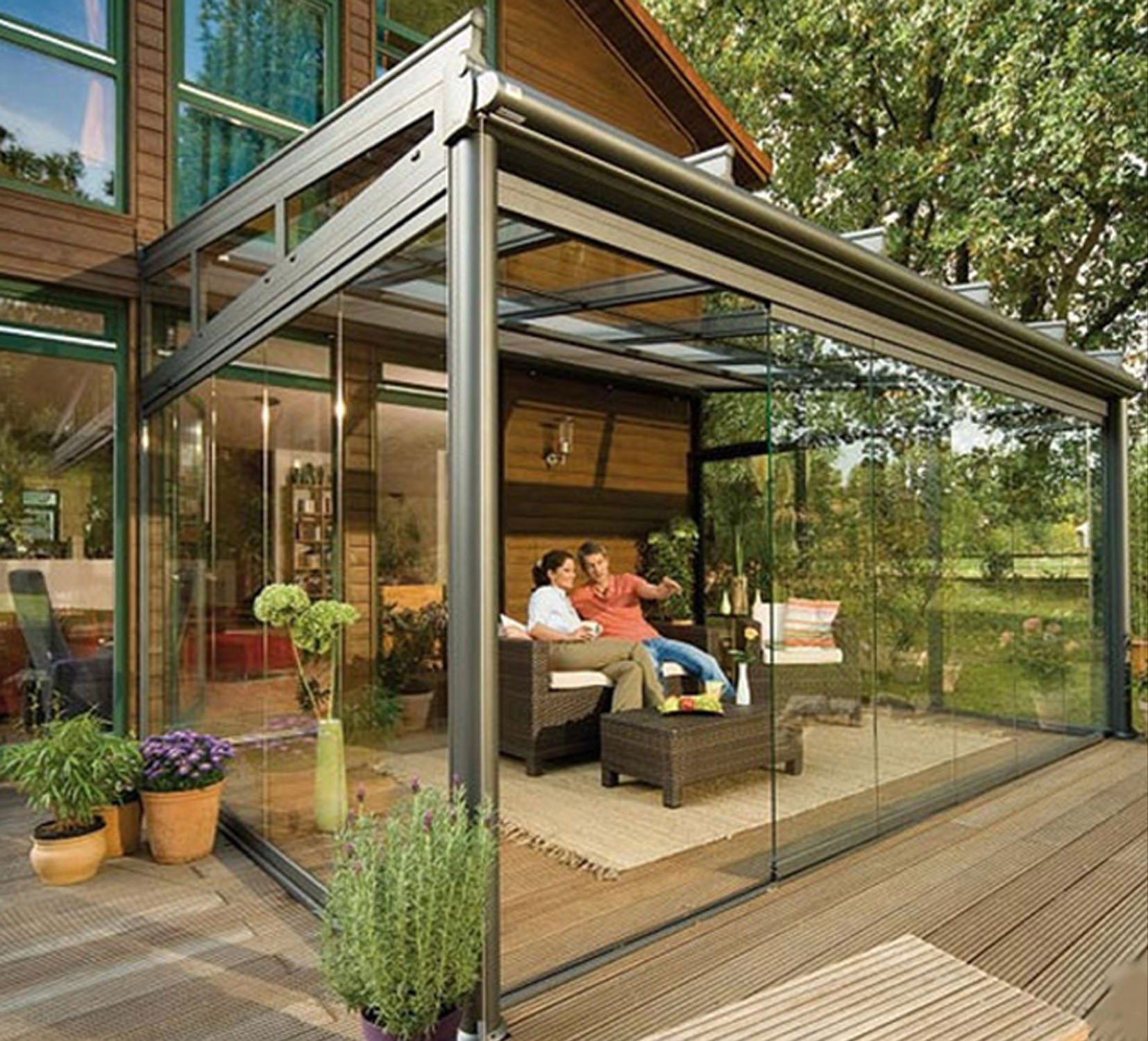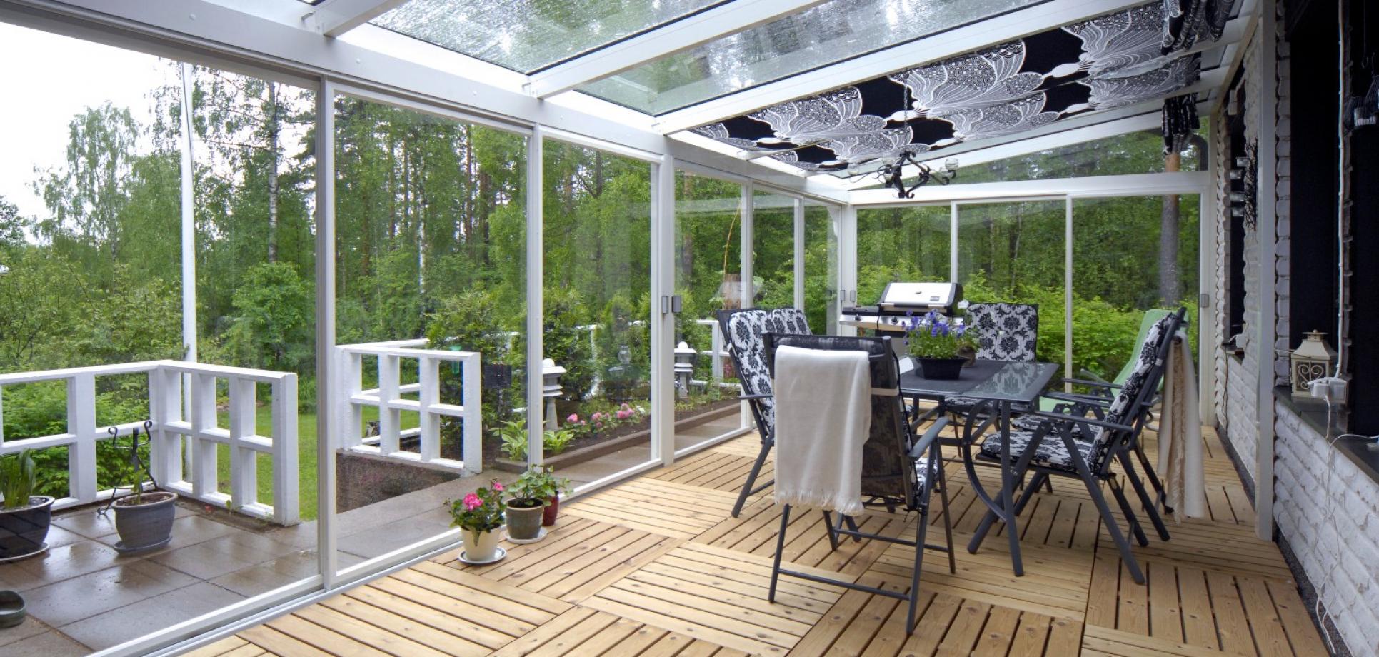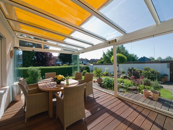 Универсальная терраса предусматривает съем стеклопакетов и дверей или имеет механизм складной крыши и стен, что делает ее открытой. Данный вид строения также основан на фундаменте и может иметь систему отопления.