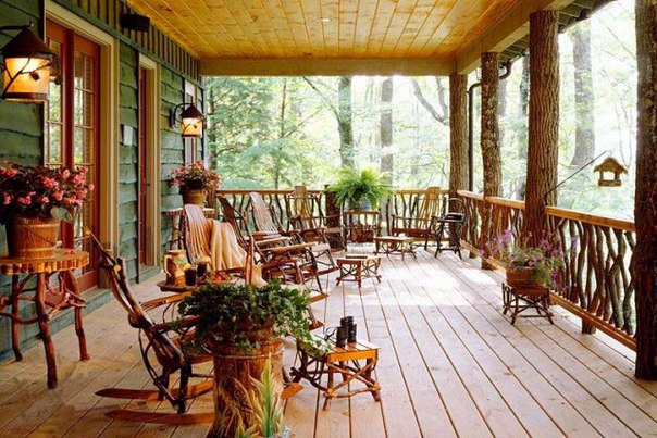 Веранды бывают открытые и застекленные, второй вариант является более функциональным. Летом здесь можно открыть все двери и окна, наслаждаясь домашним уютом и отдыхом на свежем воздухе. Владельцы домов с верандами используют их в качестве гостиных, столовых, удобных мест для танцев во время вечеринки, и, как уже было отмечено выше, для выращивания цветов и деревьев в кадках.