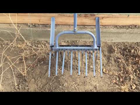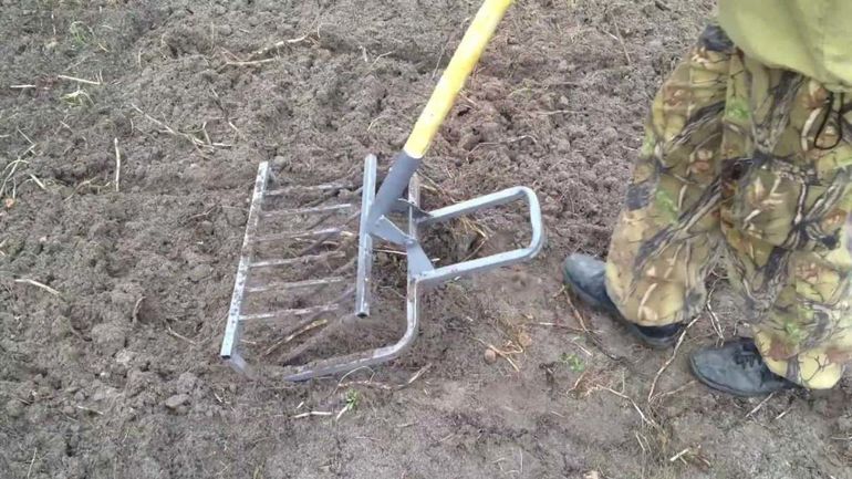 Зубьями вил намного сподручнее и быстрее, чем лопатой, разбивать крупные комья земли — в разрушении участвуют сразу четыре стержня.