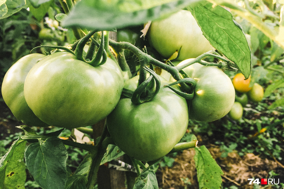 А когда начинает созревать — блестит, — рассказал Е1.RU Михаил Карпухин. — После этого он начинает потихоньку приобретать коричнево-оранжевый цвет. Вот на этой стадии и нужно сорвать томат, именно это состояние и есть бланжевая спелость.