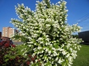 - Минесота Сноуфлейк – стройный вертикальный куст высотой около 2 м обильно покрывается небольшими махровыми цветами;