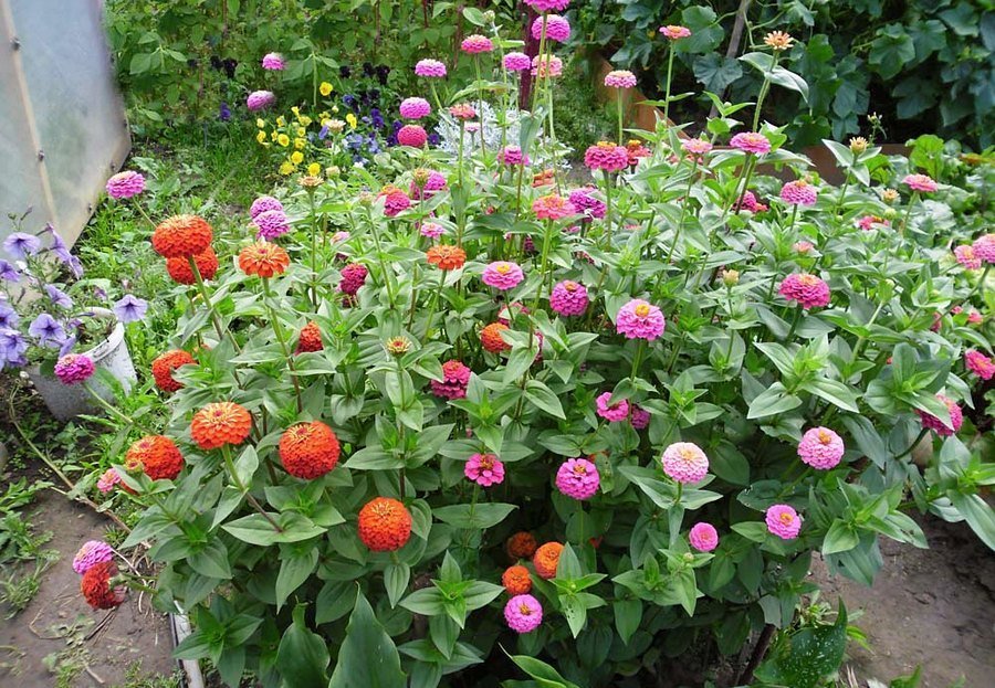 Циния на клумбе и просто в саду выглядит элегантно и очень ненавязчиво, что видно на фото: