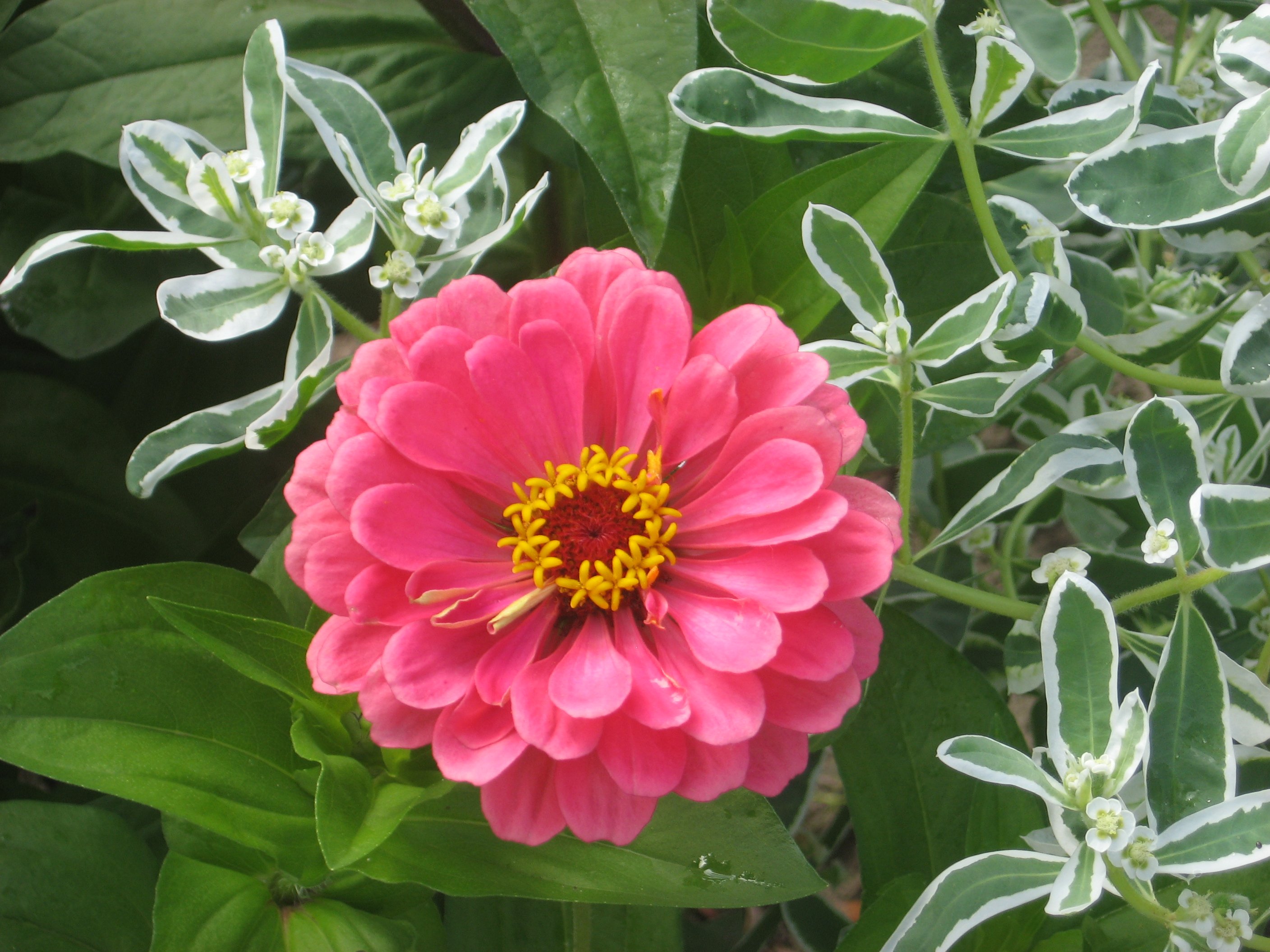 Темно-зеленая листва цинний прекрасно сочетается с стелющимися растениями, такими как ползучая Дженни или лиана сладкого картофеля.