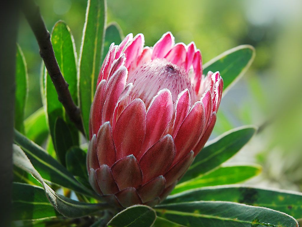 В высоту цветок может достигать 60 сантиметров. Длина цельнокрайних линейных листовых пластин равна 12,5 сантиметрам, а ширина — 1 сантиметру. На верхушках голых цветоносов находятся соцветия головчатой формы. В их состав входят душистые цветки карминно-розового окраса. На одном кустике может быть до 40 соцветий.