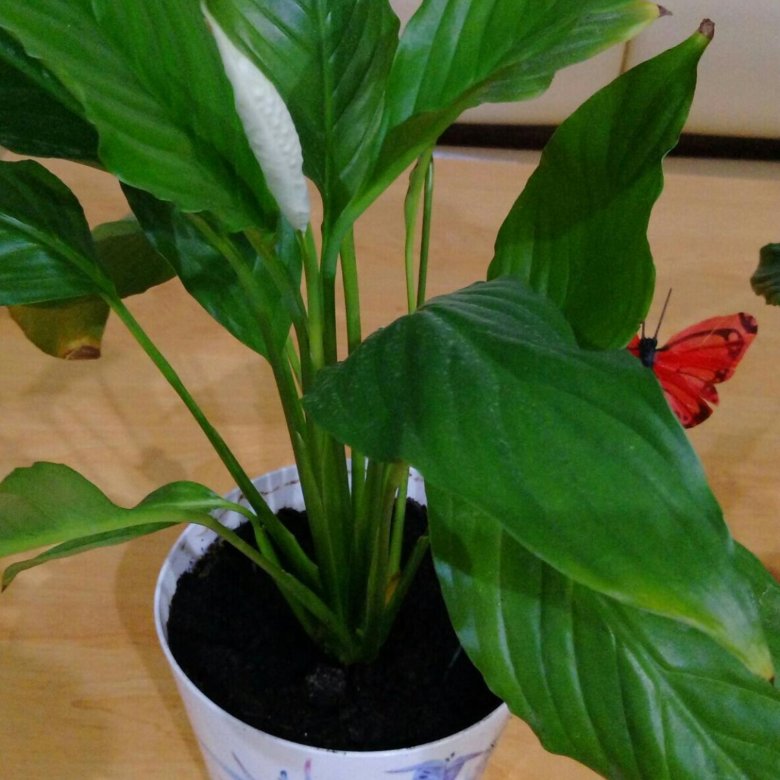 Если оставить спатифиллум на хорошо освещенном месте, он очень быстро пожелтеет и погибнет, так что ставьте на восточную сторону и не оставляйте на солнце. Не забывайте также вовремя удалят отцветшие стрелки. Чем дольше держать такие зеленые соцветия, тем больше жизненных сил они вытягивают из растения, тем меньше будет цветов.