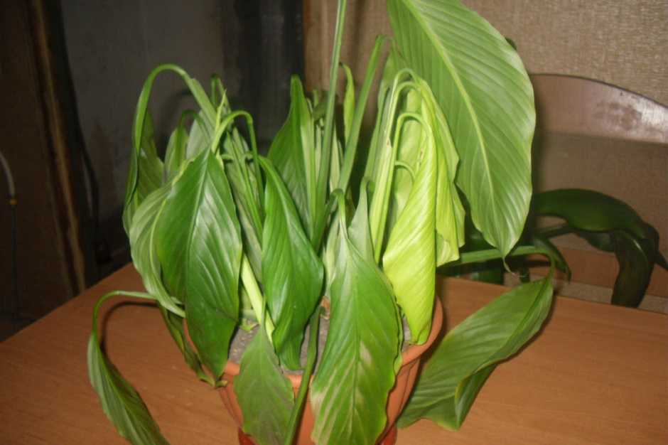 При недостаточном поливе растения земля становится пересохшей, что отрицательно отражается на его внешнем виде. Со временем спатифиллум начинает усыхать и может погибнуть.