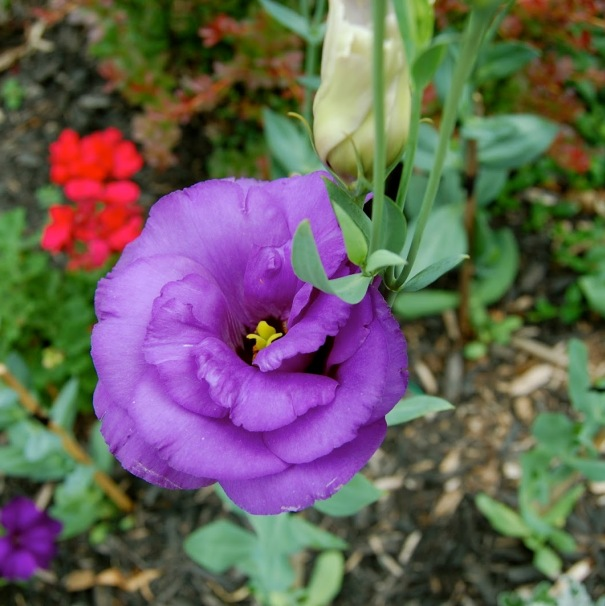 Эустома самодостаточное растение, потому вписать ее в цветник или клумбу довольно сложно. Наиболее эффектно она смотрится в узких рабатках или бордюрах, где «в ногах» роскошных кустов эустомы растут почвопокровные растения – душистые алиссумы, нежные лобелии, анютины глазки или серебристые цинерарии.