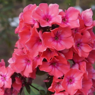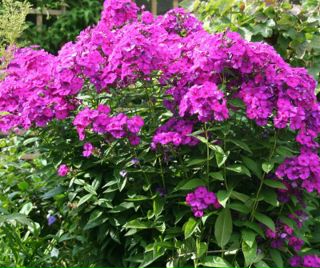 Садовый флокс — самый высокий из обычно выращиваемых видов, достигающий от 3 до 5 футов в высоту в зависимости от сорта. Местные виды могут вырасти еще выше в идеальных условиях выращивания. Отдельные цветки от 1 до 1 ½ дюйма в ширину, собраны в большие концевые грозди шириной от 4 до 8 дюймов. Ароматные цветы могут быть пурпурными, розовыми, белыми, бледно-лиловыми, пурпурными или синими, цветущие с начала до конца лета. Некоторые сорта оранжевые.Дикие растения обычно цветут от пурпурного до нежно-пурпурного.