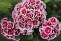 ch. var. Heddewigii) и её садовые формы. Очень красива двухцветная гвоздика Геддевига окаймлённая – цветки имеют красную или белую кайму по наружному краю лепестков. Гвоздика увенчанная – низкорослые растения, есть совсем маленькие кустики сорта Персиан Карапет, высотой до 15 см с мелкими цветами белого, розового, красного и малинового цвета. Более рослые гвоздики рассечено-лепестковые (до 30 см высотой), имеют крупные цветы с изогнутыми рассеченными лепестками. Из этой разновидности гвоздик популярны махровые сорта Шнеебаль и Луцифер. Из низкорослых китайских гвоздик очень декоративны сорта «Шарм волшебная смесь» и «Гелстар».