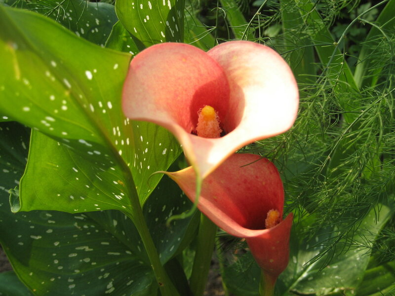 Эти цветы представляют собой загадку.Удивительно, но это ни каллы, ни лилии! После некоторой путаницы среди ранних ботаников, они в конечном итоге были классифицированы как Зантедеския и, как выяснилось, с научной точки зрения связаны с филодендроном, потосом и каладием. Также удивительно, что то, что мы думаем о цветах, на самом деле является листьями в форме сердца!
