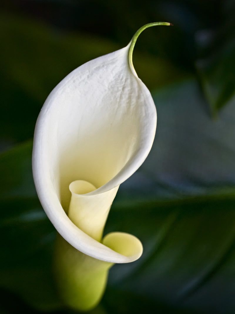 Каллы — это гладкие, элегантные срезанные цветы с гибкими стеблями, которые легко изгибаются в изящные силуэты. Их нежные соцветия легко оставляют синяки, и с ними нужно обращаться осторожно.