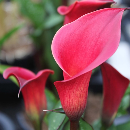 Калла «Индийское лето». Имеет красные цветки с гранатовым оттенком.