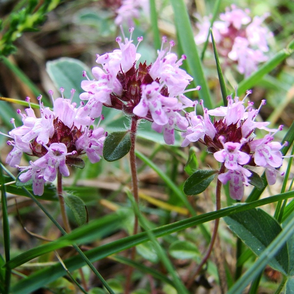 У тимьяна ползучего цветки розово-лиловые, собраны они в головчатые соцветия. Тимьян ползучий цветет в августе 30 дней.