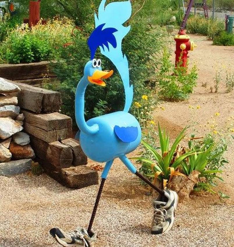 Большое распространение получили садовые фигурки из пластиковых бутылок различной емкости. Это еще и экологично, поскольку выброшенные на свалку бутылки разлагаются от 100 до 500 лет.