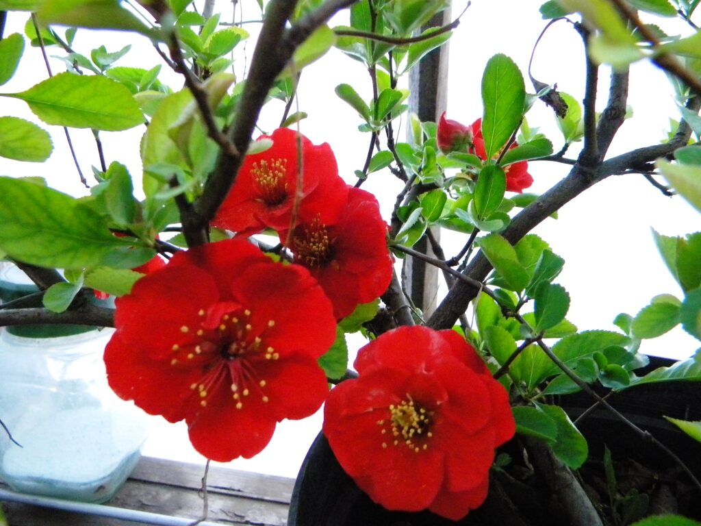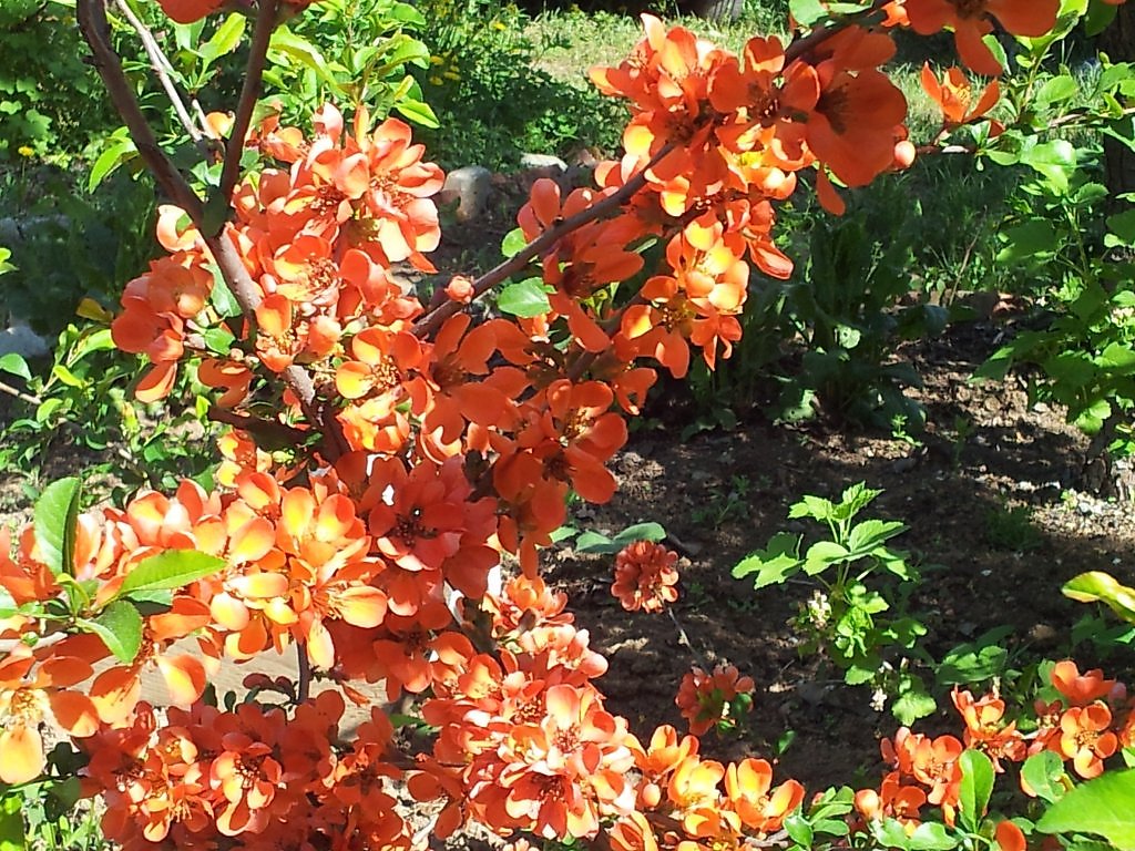 Цветы у айвы японской крупные, до 5 см очень красивой красно-оранжевой окраски, но имеются также сорта с белыми и розовыми цветами, и даже с махровыми. Цветет айва очень обильно и долго в мае-июне.