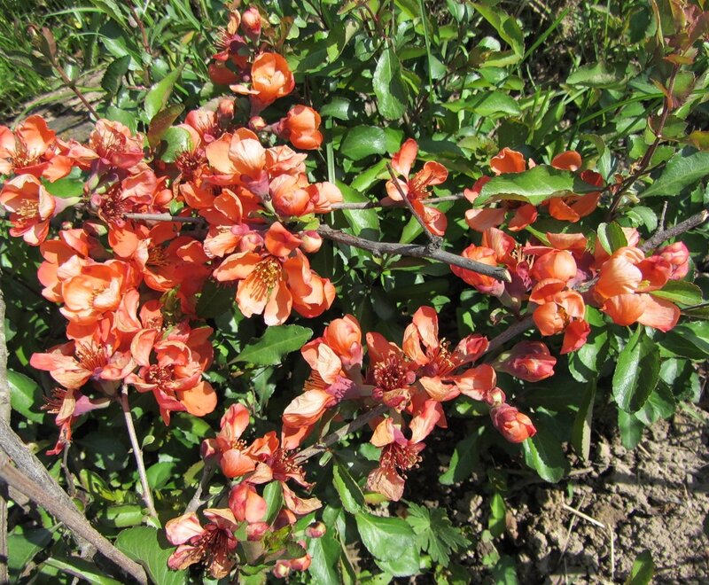 Я люблю айву, так как она отличается от типичного весеннего цветка форзиции. Насыщенные цвета согревают в прохладный весенний день и заряжают энергией от пребывания в саду. Эти растения создают очень красочную живую изгородь. Я думаю, что айва лучше всего приучена к стене, чтобы хвастаться своими цветами на уровне глаз.