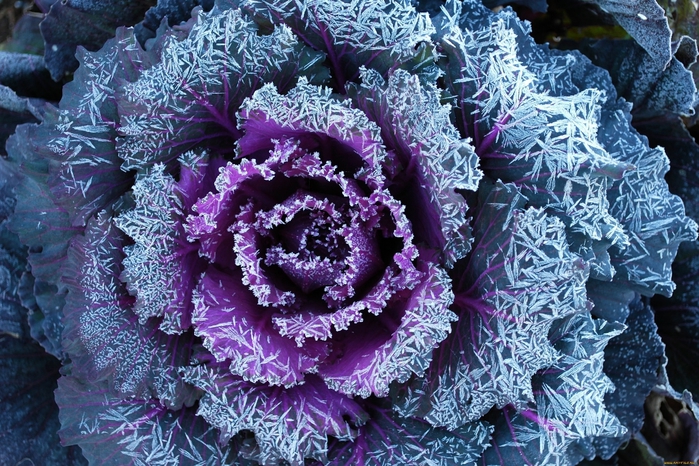 Декоративная капуста – довольно морозостойкая культура, легко выносит небольшие заморозки (до -5С). Более того, похолодания даже идут ей на пользу, делая окраску листьев более яркой. Поэтому декоративная капуста будет украшать ваш сад до поздней осени, когда отцветут последние астры и настурции.