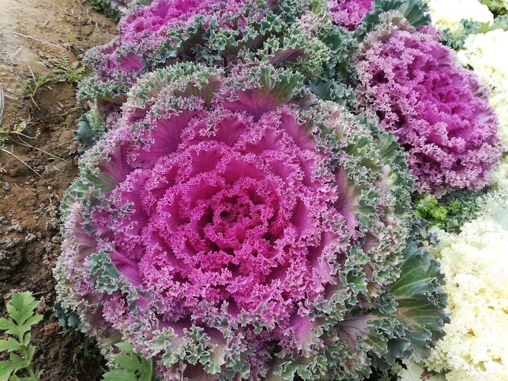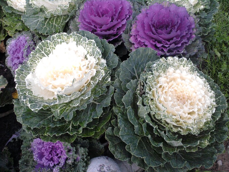 Мой друг выращивает каждую осень высококачественную декоративную капусту и листовую капусту.Декоративная капуста, как правило, очень похожа на ту, что вы видите в своем огороде – большие округлые кочаны, но с большими сочными листьями сине-зеленого, розового, пурпурного и белого цвета.