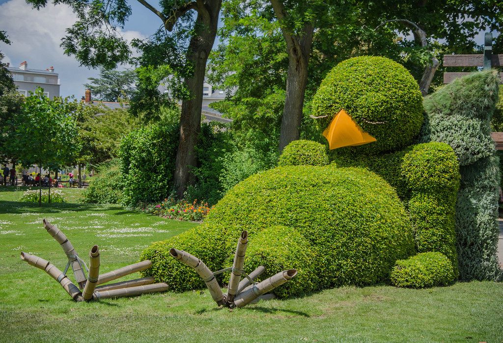 Топиари — это фигурная стрижка деревьев и кустарников для создания из них различных садовых скульптур и декоративных форм.