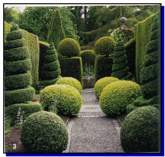 Искусство создания декоративных форм путем обрезки деревьев и кустарников известно как топиарий.