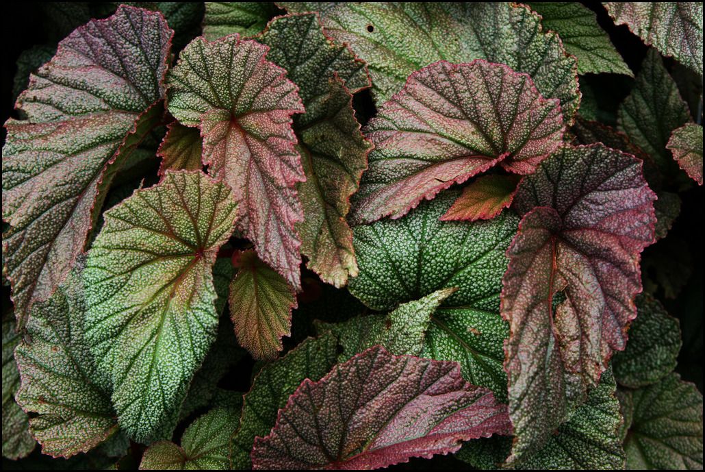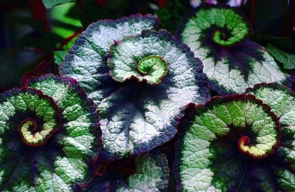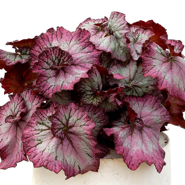 Бегонии Рекс ( Begonia rex ): Бегонии Рекс выращивают не из-за их цветов, а из-за их красивых листьев. Листья могут быть калейдоскопом цветов, которые варьируются в оттенках зеленого, красного, розового, серебристого, серого, лавандового и темно-бордового, настолько глубокого, что кажется черным. Эти впечатляющие бегонии лучше всего растут в помещении или в контейнерах, помещенных в полутень.