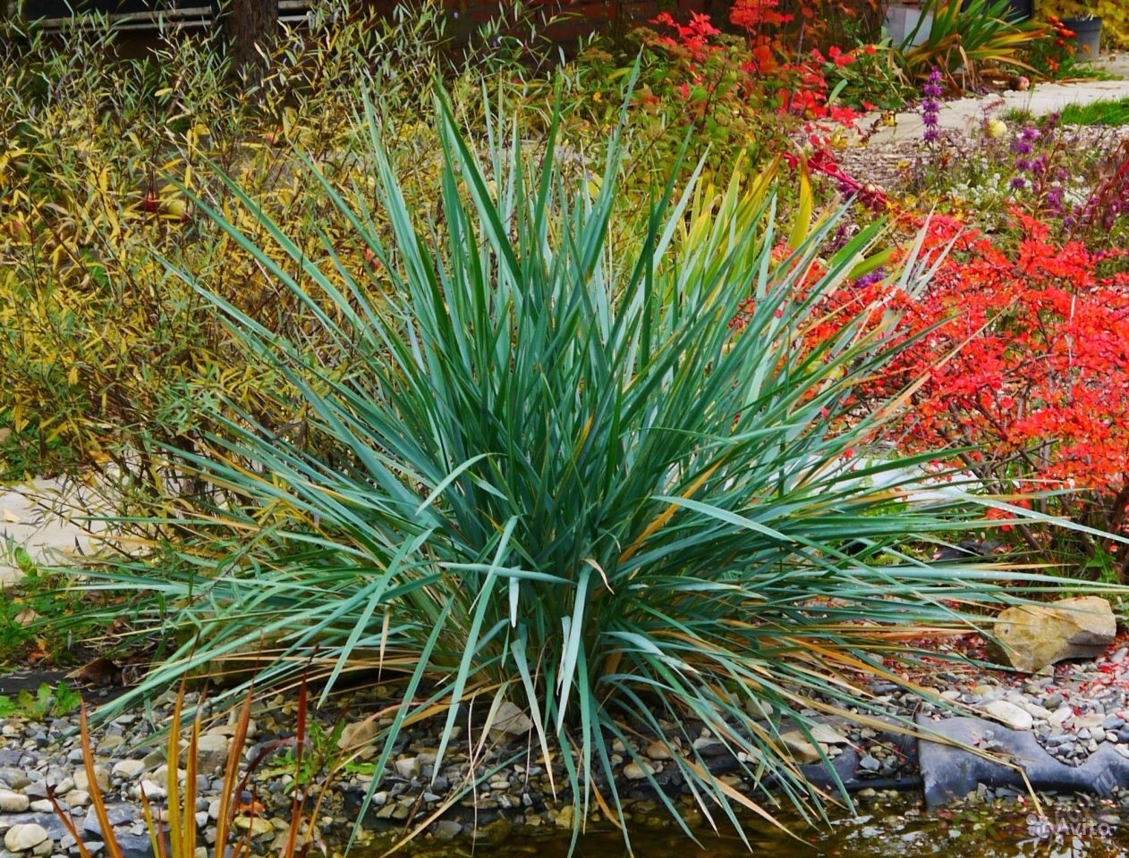 Компактные розетки из длинных листьев красиво выглядят на фоне водоемов. Особенно ценятся растения с вариегатной листвой, которая сама по себе может стать колоритной достопримечательностью сада.