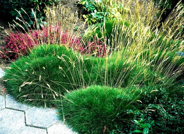 Интересны сорта овсяницы с сизой и золотистой листвой, хотя и зеленолистные растения также пользуются спросом.