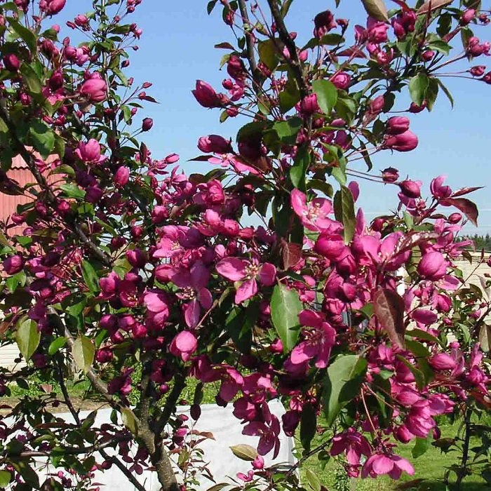 Ярко-белые, светло-розовые, а иногда и пурпурно-розовые цветы придают весеннему саду особую атмосферу. Буйный цветок часто пахнет чудесно и привлекает бесчисленное количество пчел. Прежде чем дерево полностью расцветет, оно уже является картиной, потому что цветы в бутонах имеют другой цвет, чем в раскрытом виде. Осенью следует второй взрыв цвета. Затем крона усеяна маленькими пурпурно-красными, (оранжевыми) красными или (оранжевыми) желтыми декоративными яблоками, которые у некоторых сортов остаются висеть на ветвях до зимы. Птицы любят яблоки, поэтому это дерево автоматически принесет больше жизни в ваш сад! Плюсов еще больше. Из-за своего ограниченного размера яблоня не занимает много места; в целом не вырастает выше 5-6 м. Кроме того, его открытая крона дает приятную, но не глубокую тень. Выбор сортов Malus Crabapple велик. Если вы хотите купить яблоню, обратите внимание на форму кроны. Вы хотите круглую, овальную или пирамидальную крону или скорее плакучую форму или дерево, которое вырастает в форму широкого веера? Это все возможно!
