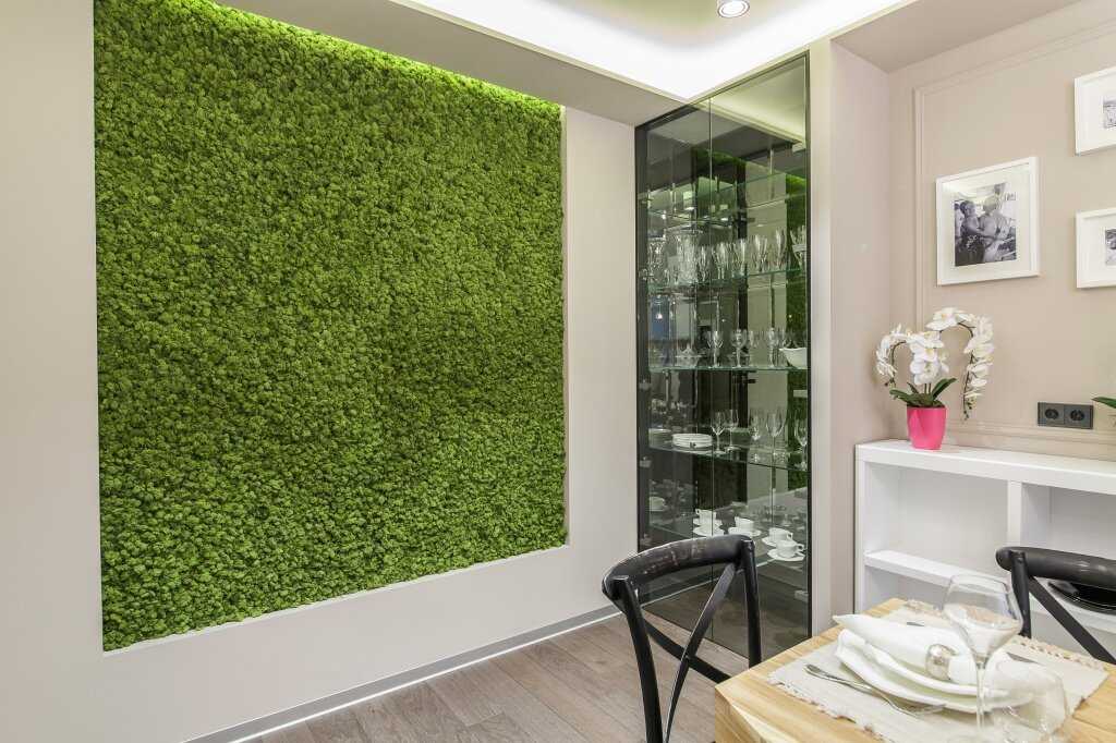 - мох, который создает интерьерное украшение. Такие виды мхов очень жизнестойкие. Места, где присутствует тень и достаточная влажность, очень комфортны, чтобы воссоздать хвойный интерьерный мох. Дизайнеры создают изо мха причудливые скульптуры и украшения из растений. Однако за растением нужно следить, чтобы оно было в тени.Интерьерный мох