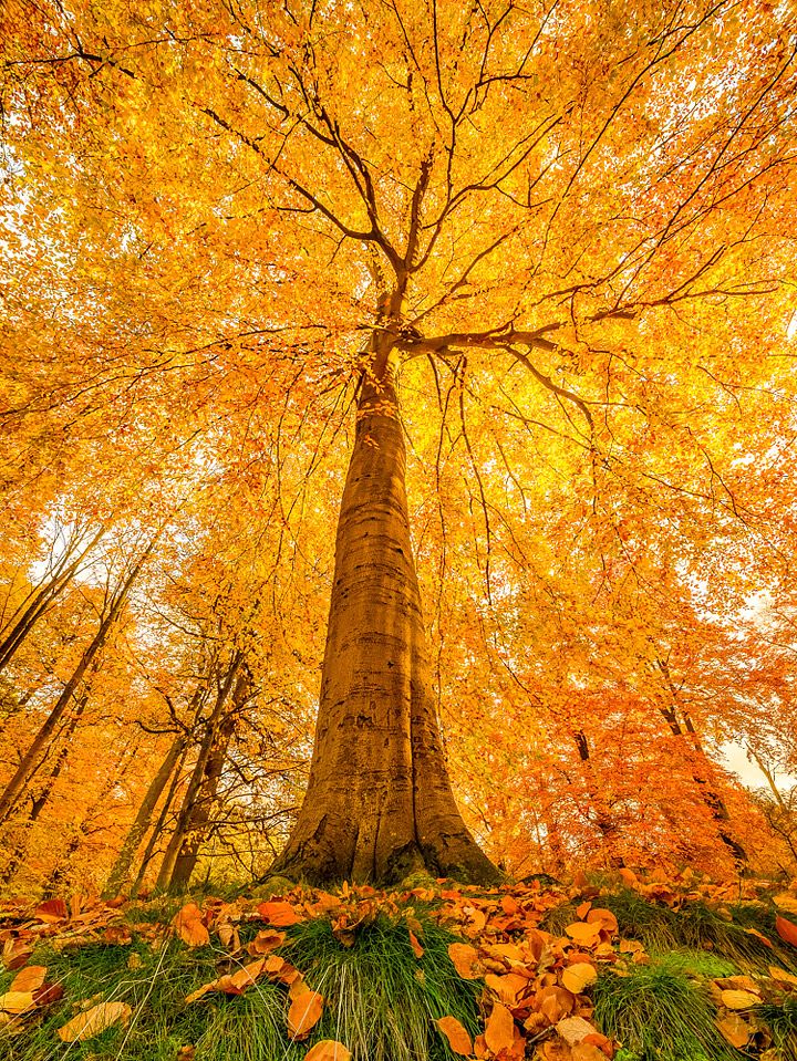 Осенний лес Деревья, лес, листва, желтые листья, осень, кроны деревьев, день, природа, светло
