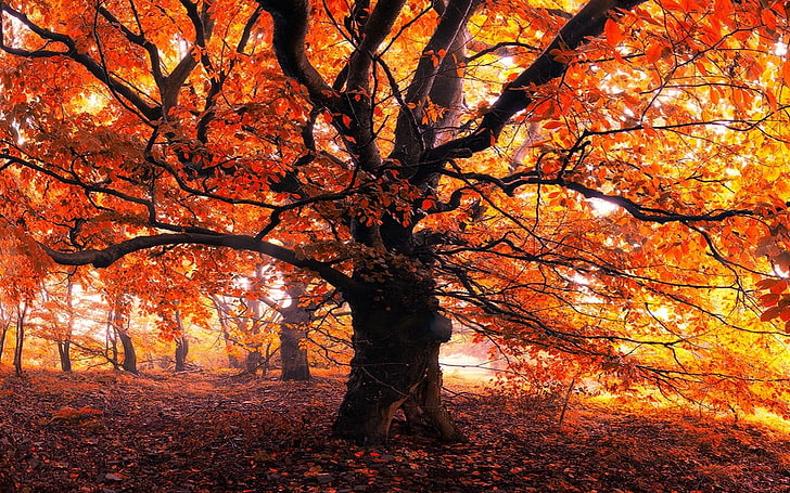 Красочные листья деревьев Деревья, осенний лес, желтые листья, красные листья, оранжевые листья,…