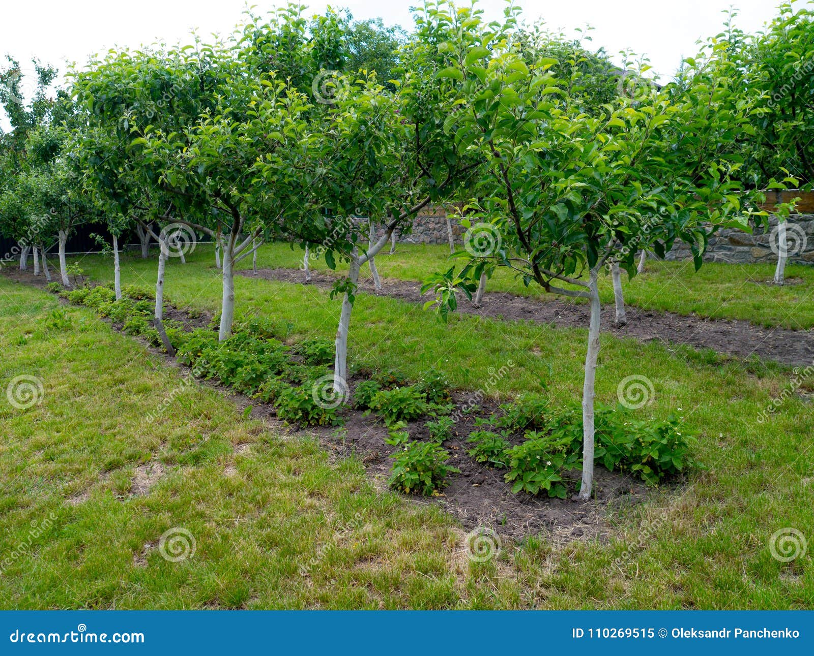 Расстояние между деревьями должно быть достаточным, чтобы они не затеняли соседние. Высокорослые сорта сажают на расстоянии 5 м друг от друга, среднерослые — 4, полукарликовые — 3, карликовые — 2 м.