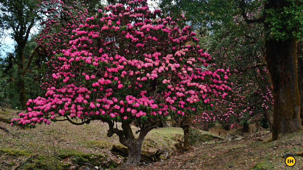 Рододендрон Маккейба (Rhododendron macabeanum) — это разновидность, которая может достигать 50 футов в высоту.