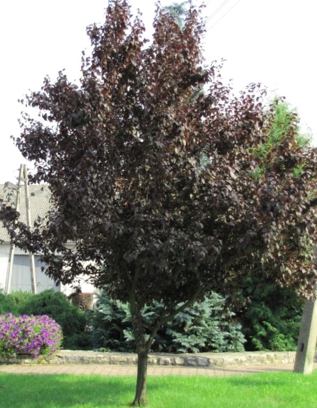 Краснолистная слива украшает любой участок, на котором она высажена. Но размещать рядом большое количество таких деревьев не стоит. Обычно на участке высаживают одно высокорослое дерево с красными листьями.