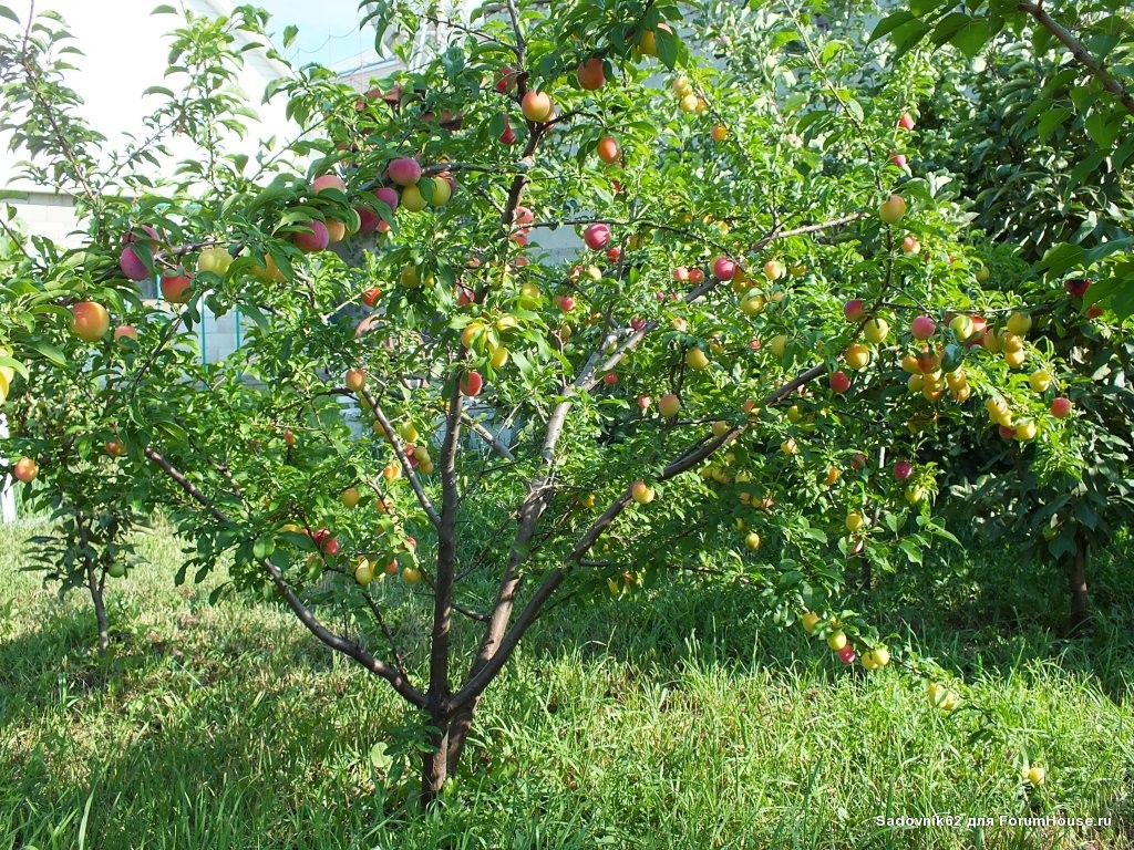 - «Сапа». Это карликовое растение, которое вырастает до полутора метров в высоту. Сорт был получен после скрещивания сливы и вишни. Дерево плодоносит очень обильно. Урожай с него можно собирать уже на второй год после высадки.