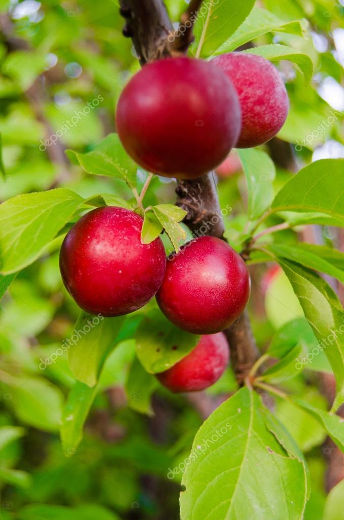 Среди растопыренных слив есть сорта с красными листьями, в том числе: