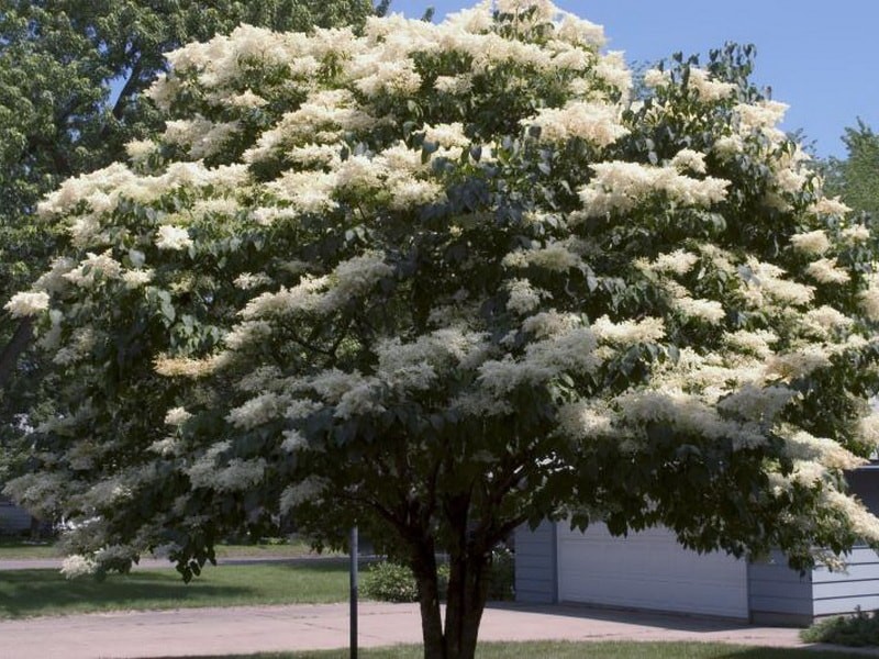 Дерево от овальной до округлой формы, цвет которого меняется от ярко-зеленого весной до темно-фиолетового летом и осенью. Висячие гроздья белых цветов, вырастающие до 25 футов в высоту и 20 футов в ширину.