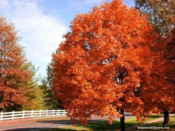 Оранжевый : оранжевый цвет листьев обусловлен каротином. Этот впечатляющий цвет — одна из многих вещей, которые делают дерево сахарного клена таким особенным (каротин также является тем же химическим веществом, которое придает моркови уникальный оранжевый цвет). Доминирующий ярко-оранжевый цвет сахарного клена заполняет холмы северо-востока осенью, и это прекрасное зрелище!