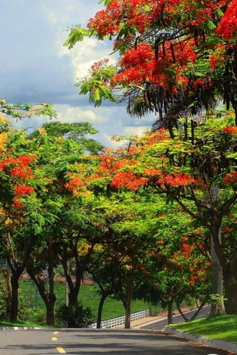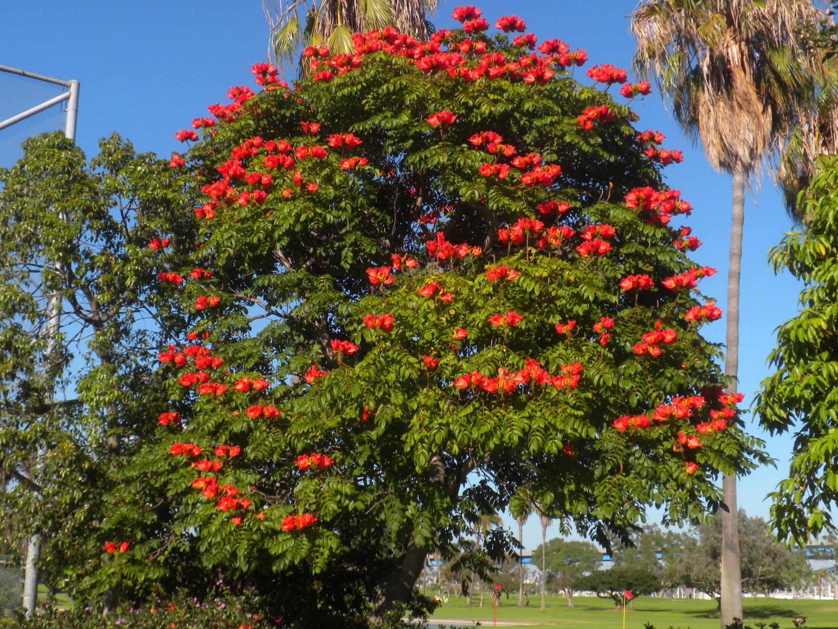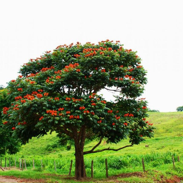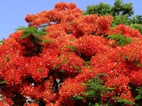 Огненное дерево — делоникс — родом с Мадагаскара. Высота делоникса сравнительно небольшая, до 10 м. Чаще всего его сажают в парках или скверах, делая из него яркие аллеи, в период цветения просто полыхающие алым огнем.