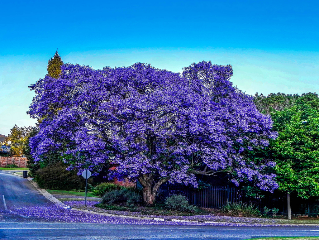 Деревья с огромными фиолетовыми соцветями — это, конечно, жаккаранда! Растение семейства Бигнониевые, родом из Южной Америки. Название происходит из языка гуарани и означает «душистая»: аромат цветов жаккранды напоминает медовый.